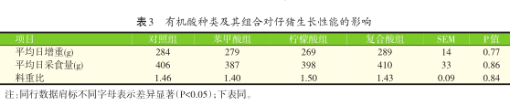 2.1有机酸种类及其组合对仔猪生长性能的影响(见表3)