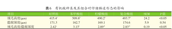 2.4有机酸种类及其组合对仔猪肠道形态的影响(见表6)