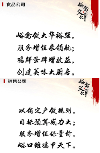 峪口禽业2014年十件大事之一:以峪口禽业文化为核心的独具特色的部门文化全面落地,峪禽文化体系建设更进一步