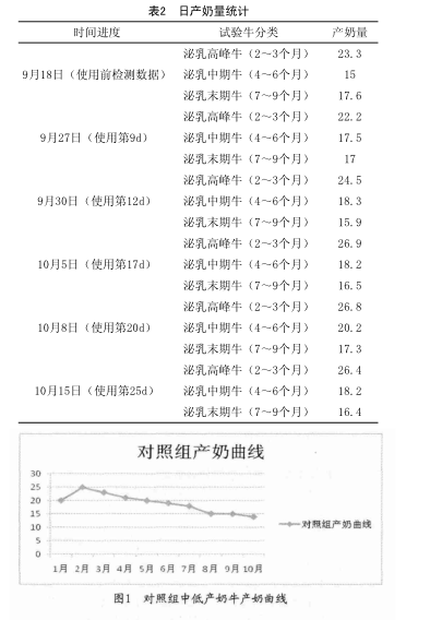 试验奶牛场分别选取年龄、胎次、体重和体况基本一致的健康中国荷斯坦奶牛10头开展饲喂对比试验,对照为本场的中低产牛二胎的泌乳曲线。