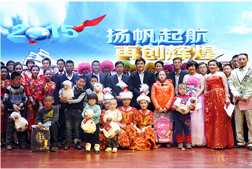 在对评选出的地区级、公司级先进员工、先进集体、创新集体进行表彰之后,迎新春联欢晚会节目汇演隆重开场。精心编排的节目无论形式还是内容都精彩纷呈,引人入胜。你看,这方娇美甜润、率直火辣的《辣妹子》刚刚退场,那边由食品部的“蒙古汉子”带来的大型民族舞 《纵鼓春天勇夺魁》就登上了舞台;这还没从品管部演绎的《西游后传》里回过神来,蛋鸡小龙团队的张林就把我们带入到了《琴书画意》之中。特别是生产部的小伙子们,用自己的聪明智慧手工制作了荧光舞的演出服,在全场灯光熄灭之后,奇异的景象引得叫好声此起彼伏。舞台上最大的亮点,还当属于由小正大人给我们带来的舞蹈《黑鬃马》了。表演者是现代化蛋鸡示范场蛋库员工的子女,那活泼可爱的舞姿,眉目流转的灵动,都给大家留下了深刻的印象,果然是长江后浪推前浪!当然了,节目赏心悦目,抽奖环节也精彩万分,大奖不断,好运连连,中奖的、没中奖的在抽奖环节中都激动不已。晚会还给所有到场的小正大人赠送了书包和羊年吉祥物,整个会场好一片其乐融融,喜气洋洋!