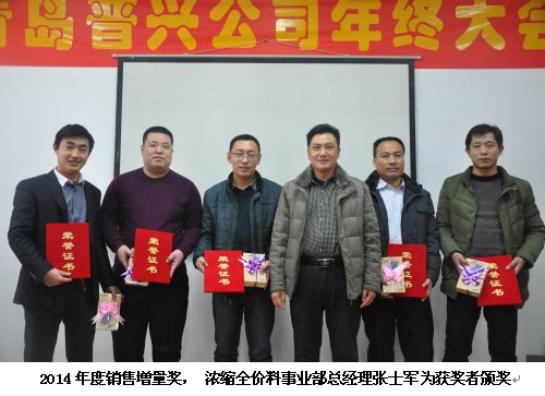 随后,销售总经理吕宝辉为在2014年度销售工作中考核执行到位、销售业绩突出、进步明显的优秀员工进行了表彰和奖励,并颁发了证书。