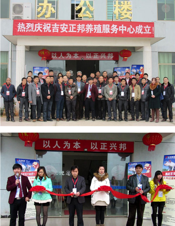 2015年3月8日,吉安正邦养殖服务中心正式成立!正邦饲料吉安分公司近百名养殖户合作伙伴应邀参加剪彩典礼,正邦饲料华东片区技术服务总监谭杨林与正邦饲料经销商代表陈万国先生共同剪彩。