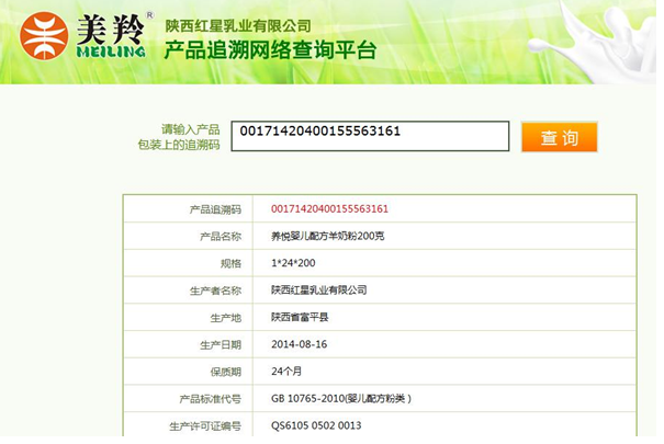 每一款产品生产的最后一道工序就是打码,为每一批产品赋予一个独有的二维码序列号,消费者可以通过查询这个序列号,从电子追溯系统上查询到产品的详细信息。我们的产品都是有“身份证”的合格产品,消费者能够追查到每一罐奶粉的“生前身后”。