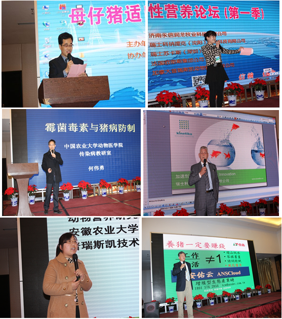 阳春三月,春风拂面,动物营养与疾病专家及150余位畜牧业同仁齐聚潍坊钧翰国际大酒店,共同探讨母仔猪料适口性问题。论坛会由济南永信润龙牧业科技有限公司展娜主持,公司赵士春总经理致欢迎词,赵总希望本次论坛能为来宾带来新的收获。论坛报告有中国农业大学何伟勇博士《霉菌毒素与猪病防制》、Rober先生《瑞士科纳提克防霉剂特点及应用情况》、加拿大普瑞斯凯动物营养公司技术经理王然《做好价值猪料的正确观念和技术要点》、安佑集团王德中博士《智慧云端平台 6+1子系、安佑核心料介绍》、比利美英伟杨宽民博士《新常态下清洁日粮的应用前景》、苏卡斯(瑞士)调味技术有限公司姚旭先生《未来甜味剂的发展方向》、欧密斯集团卢楠先生《欧密斯集团及产品简介》、资深营养师Michel Guilaume《饲料的适口性对消化道的优化动作》。报告精彩纷呈,大家享受技术盛宴同时,就平时饲料配方中存在疑惑与专家面对面交流,来宾交流热情高涨,会议在温馨而热烈氛围中结束。会后济南永信润龙牧业科技有限公司为来宾准备了丰盛晚宴,期间进行了幸运大抽奖,愿每位来宾2015好运相伴!