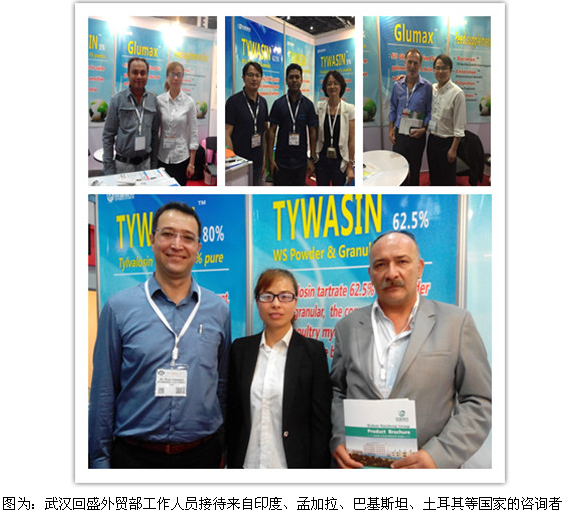 作为国内屈指可数的泰万菌素原料药生产商,武汉回盛携优质产品亮相展会。泰万菌素原料药(TYWASIN)、泰万菌素制剂类产品及功能性营养产品谷胱甘肽(GLUMAX)吸引了国外众多客户前来咨询洽谈。
