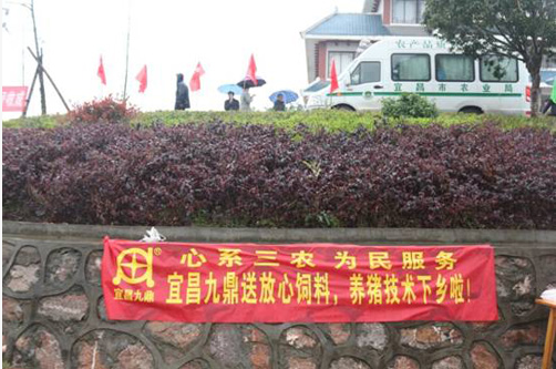 连绵的春雨挡不住一大早从四面八方闻讯赶来的村民的热情,三农职能部门及各农资企业代表们早已排好位准备好资料迎接村民的到来;我们宜昌九鼎牧业作为唯一受邀的饲料生产企业,带着九鼎饲料和养猪技术,带着九鼎人的真诚和热情参加了活动。