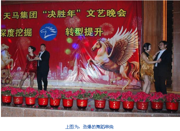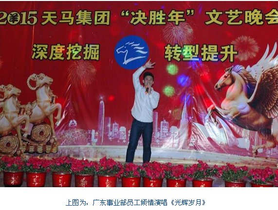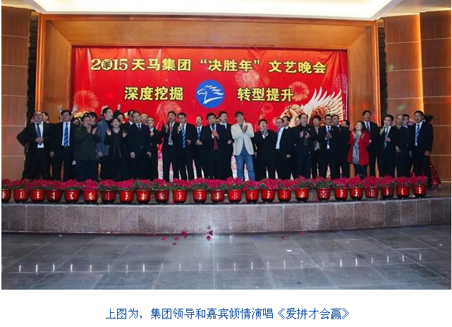 天马集团2015年文艺晚会现场写满了温馨、幸福和欢乐。愿我们的晚会越办越好,越办越精彩,愿天马的明天更加辉煌,更加灿烂!
