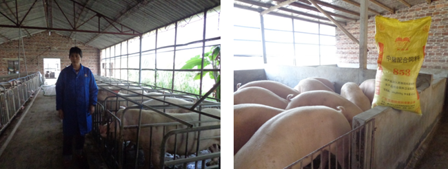 我对自己用的饲料比较满意,性价比较高。因此我的猪场同别人的猪场相比,行情好时,他们能赚两百一头,我能赚三百,每头总能多赚100元;行情不好的时候,就说今年1月到现在吧,他们会亏本,我能保本,甚至还有点钱赚。