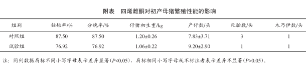 四烯雌酮对后备母猪繁殖性能的影响见附表。