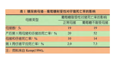 这可能会导致母猪的葡萄糖耐受性下降,正如荷兰瓦赫宁根大学BasKemp教授1994年的研究显示(表1)。乳房和外阴水肿可见于母猪妊娠期的最后一周。