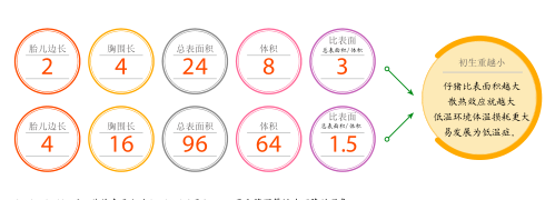 笔者认为,适当提高胎儿的初生重很有必要,但不能一味为了提高胎儿初生重进行攻胎,因为初生仔猪的活力比仔猪初生重更重要。仔猪活力与妊娠后期胎儿的生长发育有密切关系。胎儿的初生重能反应这一点,如果初生重太小(<0.8kg)则说明怀孕后期仔猪发育不良,并且体型小的仔猪就像散热器,出生后最易出现低温症。假设把仔猪比作一个立方体,如果初生重比较小的仔猪设定边长2cm,其体积为2×2×2=8cm3,总表面积为2×2×6(面)=24cm2,其比表面为总表面积/体积,即24/8=3.00;其比体积为体积/总表面积,即8/24=0.33。如果胎儿初生重比较大,设定边长为4cm,其体积为4×4×4=64cm3,其总表面积为4×4×6(面)=96cm2,其比表面积为总表面积/体积,即96/64=1.50。可见胎儿初生重越小,其比表面积越大,仔猪的散热效应就越大,结果不断向环境中散热,低温环境下仔猪的体温损耗更大,出生后最易发展为低温症。