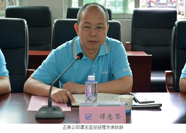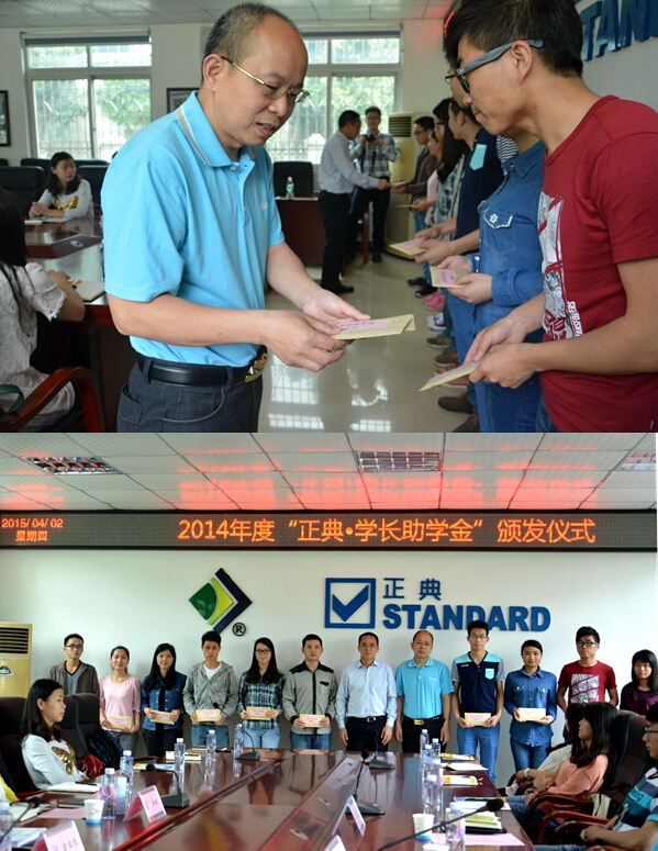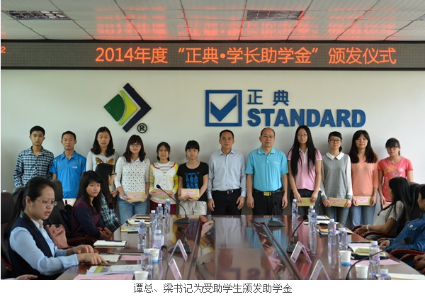 颁发仪式上,正典公司谭志坚总经理发表致辞,介绍了“正典学长助学金”设立的来龙去脉,并用自己的人生经历鼓励受助学生在艰难中不要气馁,刻苦学习、努力奋斗,希望受助学生懂得珍惜和感恩,做有责任、敢于担当的人。