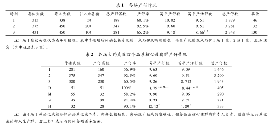 各场产仔情况见表1、表2。