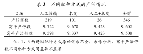 3.3不同配种方式的产仔情况