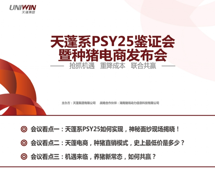 天蓬系PSY25鉴证会暨种猪电商发布会 邀您加入