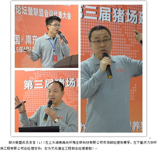 2015年4月11日,第三届(2015)中国养猪工程战略联盟猪场建设高峰论坛暨联盟会员代表大会在四川省南充市天兆猪业龙池核心种猪场隆重召开。本次会议以猪场建设、环保处理、病死猪无害化处理、智能化信息、个人家庭农场规划等为主题进行了探讨。本次大会的召开有利于促进联盟成员之间的沟通交流,增强联盟成员的行业竞争力。同时,也有利于促进联盟更好地为客户提供高品质产品及服务。