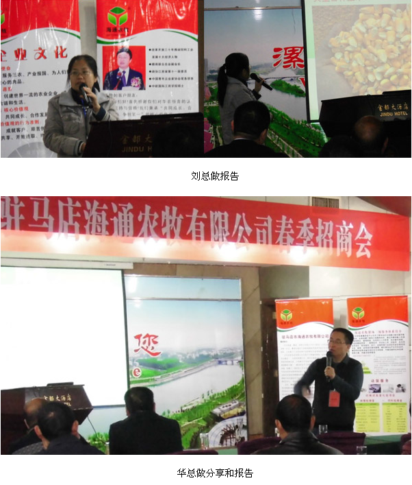 随着宣誓环节的结束,大会正式开始。大会首先由驻马店海通农牧有限公司总经理朱建国先生做大会致辞。然后由集团品管部刘锦湖总监围绕产品质量、三级技术服务体系、产品研发等方面和客户做研讨交流;河南、湖北区总经理华志平先生围绕当前养猪形式和未来趋势、养猪行业的新常态等方面与客户进行研讨交流。当前的养猪行业,不管是经销商还是销售人员都存在浮躁的现象。华总在做报告之前为我们大家分享了一段令人深思,发人深省的短片《人生如莲》。在会议的这一阶段通过刘总和华总与客户的交流研讨,让客户对我们公司有了更深一步的了解和认识,并得到了广大客户的高度认可。