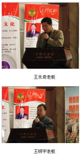 随着会议的推进,乘着各位领导交流所掀起的高潮浪潮;会议迎来了老客户代表发言阶段。首先由规模化养殖老板王永奇先生讲述自己由小打小闹到规模化养殖的道路,并讲解在规模化养殖期间与我们公司合作自2012年至今每年的代表性实证数据。我们公司的产品真正做到了让规模化养殖安心、放心的使用我们的产品。