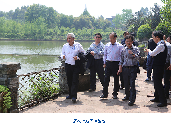 李全录副局长一行首先来到位于成都市双流县的丹龙渔业养殖专业合作社,重点走访了合作社的锦鲤养殖基地。据悉,该基地占地200余亩,锦鲤养殖面积达80亩,是集休闲、娱乐、餐饮、锦鲤养殖为一体的现代生态农庄。该合作社带头人李成龙介绍,2013年,合作社与通威合作实施底排污技术,当时就是由吴宗文老师具体指导。