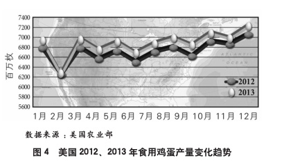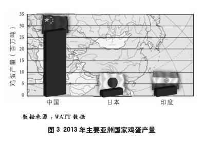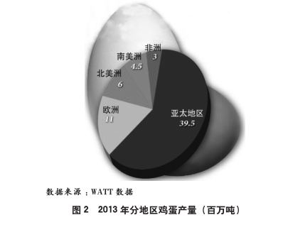 在2013年全球将近6?700万吨的鸡蛋产量中,中国鸡蛋产量占了2?876万吨,且其所占将继续增长。