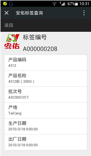 随着安佑DNA防伪追溯系统的上线,广大客户朋友仅需通过智能手机扫描包装袋上的二维码,即可查看产品完整信息,并通过标签上的DNA特殊辨识功能来鉴别产品真伪,避免利益受损。