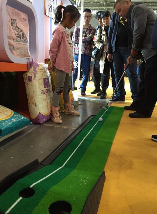 雷米高在展位现场设置了高尔夫小游戏,提倡“健康活力”的生活理念,微信公众号(pet-baby) 的好友挥杆赢取大礼包:赛极号天然粮、神犬军饷澳宝…. 四川同胞好热情的参与运动,爱生活,爱健康,追求着简单的快乐。