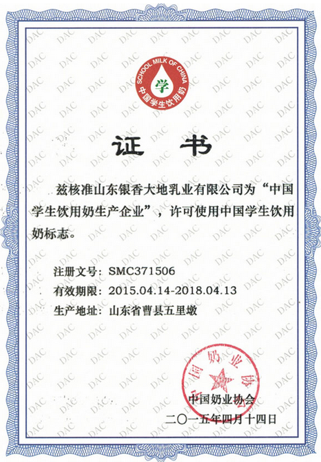 成为“中国学生奶饮用生产企业”的同时,也昭示着银香伟业集团将有条件为国家“学生饮用奶计划”的推广提供更多帮助。国家“学生饮用奶计划”是在联合国粮农组织于1998年10月召开的“21世纪学校牛奶国际会议”后,借鉴国际经验,根据我国国情,由农业部、教育部等七部门于2000年联合启动,在全国中小学校实施的一项学生营养改善专项计划,是以改善中小学生营养状况、促进中小学生发育成长、提高中小学生健康水平为目的,在全国中小学校实施的学生营养改善专项计划,从深层意义上来说,这也是保护民族未来,提升民族体质的重要战略。