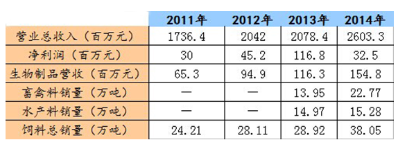 2014年公司销售生猪45.97万头,其中,仔猪及保育猪24.11万头,育肥猪21.15万头,种猪0.71万 头。艾格菲实业实现营收5.43亿元,成为总营收增加的主要来源,剔除该因素后营收同比基本持平。受国内生猪价格低迷影响,艾格菲实业净利润亏损2944万元,其中上半年亏损4,651万元;汉世伟净利润亏损-958万元。期内生猪养殖综合毛利率为-6.26%,头均亏损62元。