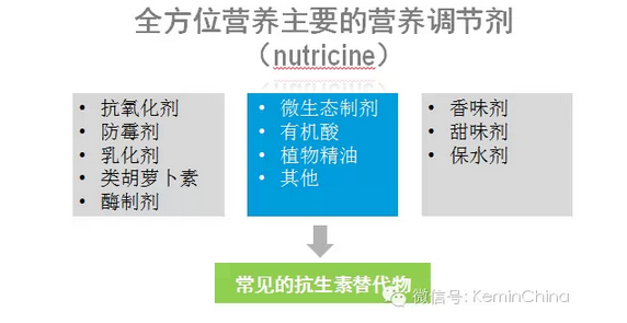在此延伸到抗生素的替代方案,就是通过其下图中的微生态、酸化剂、植物精油来解决。