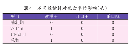 2.6 不同教槽料对仔猪死亡情况的影响 (见表4)