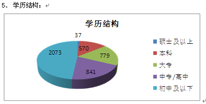 大专以上人员占比32.45%,从人员群体上讲主要集中在职能系统和营销系统,生产系统的大专以上人员占比相对较低。初中及以下学历占比接近一半说明了目前的企业还处于劳动密集型阶段,从业人员还不能进行创造性的工作,更多的是机械的加工和重复的劳动。其实通过对ERP人员的分析,有一个客观数据没有得到有效体现,就是我们的科级干部有一部分人员的学历集中在高中甚至以下的层面,这个有因发展过快而产生的历史原因,但是却需要我们去解决。我们多年来一直坚持做校园招聘,2014年招聘的人员60%以上为一本以上学校毕业生,但我们回首一下我们招聘的结果,超过半年以上还在职的人员比例不到当初招聘的20%。我们过去的管理者总是习惯于说离开的人是不合格的人,是不优秀的人,是人力资源部没有招聘好的人,可是事实上我们做过跟踪调查,离开的人有很大一部分比在宝迪业绩还优秀。当初是他们主动放弃了我们,而不是被我们主动放弃,别人走了,我们再在背后说别人的种种“不是”,这种感觉明显带着吃不到葡萄说葡萄酸的心理。我们真的要学会关注知识、尊重知识、让知识为我所用,如果吃一堑不能长一智,我们真的要贻笑大方了。集团加大对重点高校、重点人才招聘力度的决策是正确的,可是我们对现有人员招聘入职之后的知识应用比例又有多少呢?大部分新员工离职的深层次原因,就是觉得自己在校学到的知识来到企业之后没有得到很好的应用。对此,一方面要加大外脑的引进,另一方面要做好现有人才的知识技能应用。