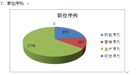 通过对职位序列进行分析,可以看出目前的公司还停留在简单的产销阶段,离成为品牌企业乃至成为行业标准制定与引领企业尚有不小的差距。真正的行业一流企业更多的是参与标准的制定和产品的研发,而事实上我们在产品研发方面的力量相当薄弱,从职位序列上我们就没有突出研发队伍的情况。