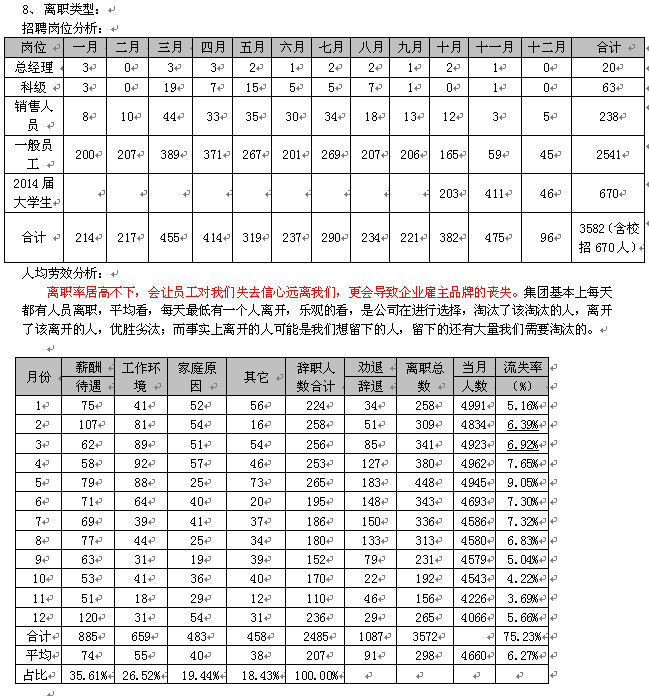 4、员工的家庭原因和其他不愿意说出的原因。