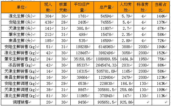 9、在公司树立标杆文化、榜样文化的大旗。以行业的标杆企业的标准为标准,以企业内部最优秀人员的标准为标准。有些时候我们闭门造车,把事业部的劳效标准定的过低,最后到月底,我们的很多企业的劳效都达到90%,甚至有些企业的全员劳效超过100%(还有的更高)。可事实上我们并没有盈利,这就让超高的劳效显得那样可笑。深入研究行业的标杆企业如何做事,以标杆企业的标准为标准,不追求假大空,不自欺欺人,制定真正符合企业实际的劳效标准。如果一个公司的劳效长期在100%以上,这说明劳效标准的制定是有问题的,反之如果一个公司的劳效长期在40%以下,这也说明了劳效标准的制定有问题,前者是故意吹嘘成绩、后者就是假大空。更可怕的事情是这两种情况在我们这里居然都存在,而且还长期存在,例如养殖的有些公司长期劳效偏高,熟食事业部销售队伍长期整体劳效偏低。劳效标准应该是一个在高处的、通过努力可实现或者接近实现的目标,不应该是被踩在脚底下的东西,更不应该是遥不可及的东西。榜样的力量是无穷的,它就像一面旗帜,一个人、一个故事、一段话都能够点燃许多人心中的激情与梦想,在组织中引起模仿和跟随。在企业内部将业绩真的优秀的员工发现出来,将优秀的经验与业绩整理出来,然后在所在单位进行宣传、推广,通过榜样的带动,打造出一种比学赶帮超的绩效管理文化。比如在车间采取看板文化,将优秀的员工的业绩通过数据的形式张榜出来,一方面可以让优秀者感受到尊重,另一方面也可以激励班组的人向其模仿和学习,从而达到整体业绩的提升。