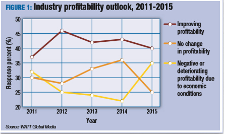 总体上,受访者对未来一年的商业前景乐观度降低。虽然许多受访者认为他们2015年的利润会增长或保持不变,但是汇率的波动和其他经济条件让不少人觉得今年的行业市场将会发生消极转变。(图1)
