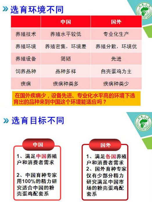 在美国的消费需求中,白壳蛋占95%,褐壳蛋占5%,在全球范围内(除中国市场),褐壳蛋占50%,白壳蛋占50%,而在中国,褐壳蛋占75%,白壳蛋占3%,粉壳蛋占22%,也就是说,粉壳蛋鸡中国是唯一需求国!试问一下,国外育种公司会花费多少精力来研究事宜中国饲养环境的蛋鸡呢?同时,也就从侧面说明了峪口京粉2号之所以生产性能优秀,适应性强的原因:根据中国饲养环境选育,根据中国养殖者、消费者的需求选育,由中国自主培育而成。