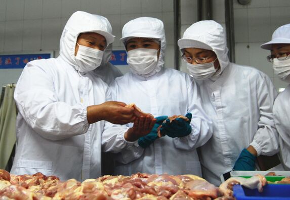 专家组先后深入熟食、调理品、分割、屠宰等车间,认真查看了企业生产、设备运行、消防安全、卫生消毒、人员管理等情况,并重点围绕食品安全问题,详细了解了肉鸡屠宰、分割加工及调理品、熟食制作工艺流程,对产品原料、添加剂来源,产品外观性状、保存运输等进行了检查,对生产现场的每个工序逐一考核验收,现场打分评定。