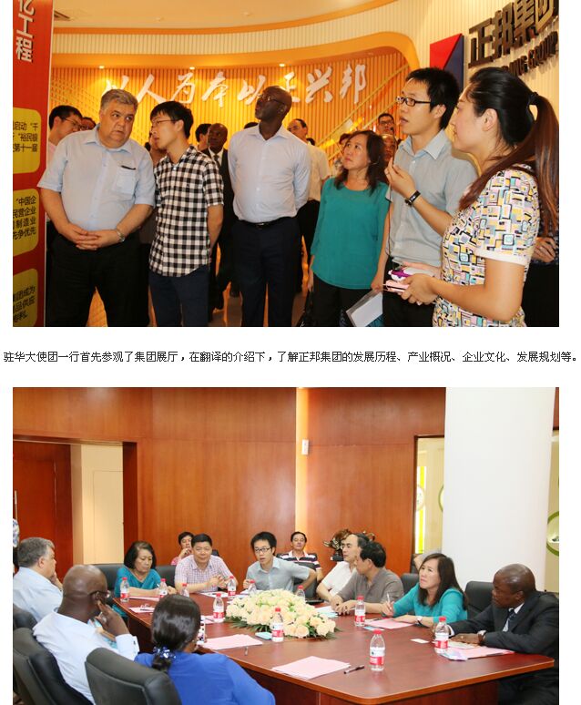 参观结束后,聂小洪与大使团成员进行了简短的座谈。聂小洪首先代表集团总裁林印孙对驻华大使团各位代表的到来表示欢迎。聂小洪介绍,正邦集团近年来不断发展壮大,并积极拓展海外业务,目前在加拿大、缅甸、埃及等国家进行了项目投资,正邦热忱欢迎国际友人前来考察指导,共谋发展。