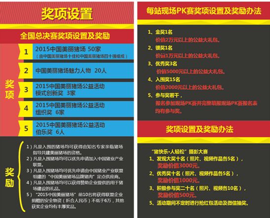 美丽猪场活动聚集了国内最顶级的养猪专家,为入选猪场解决生产技术难题,并为猪场的生产提供建议指导,获奖单位和个人将获赠价值不菲的绿色投入品,帮助猪场改进生产,让猪场获得实实在在的利益。