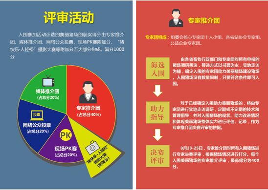 如此高规格的活动,门槛却相当亲民,凡是基础母猪200头以上的猪场均可报名参加“安佑杯”寻找中国美丽猪场活动的评选。活动注重的不仅仅是现场PK赛一个小小的环节,参加美丽猪场活动的猪场的总的最后得分将由专家推介团(占总分40%)、媒体推介团(占总分20%)、网络公众投票(占总分20%)、现场PK赛(20%附加分)等部分构成,更关键的是,在评选过程中,史上最强专家团队将助力提升猪场生产成绩,共建美丽猪场,三个层次的专家团队的每一次走访,对猪场来说都是一次提升的过程。其他的养猪朋友和所有热爱养猪的行业内外人士和广大消费者等还可以参加“猪快乐·人轻松”摄影大赛,展现人、猪自然和谐的新风尚。