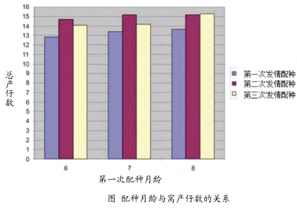 后备母猪在6~7月龄时将会开始发情。研究表明,后备母猪在第2次发情时配种能获得更多的窝产仔数(如图所示)。