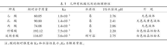 1 常见酸化剂的种类及物理特性