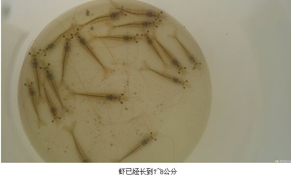 6月27日放下的90万尾虾苗,现在已经长到了7~8公分。看着今年第二季虾的喜人涨势,王生林显得十分开心。(小通仔)