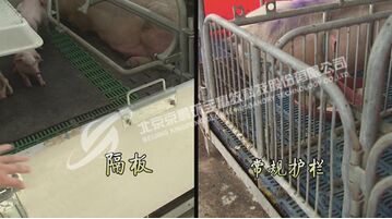 从上图中可以看出,京鹏环宇畜牧提供的新型分娩栏与常规护栏比较,隔板起到了对风的阻隔作用,使得栏体更加安全舒适。仔猪与母猪生活在有隔板保护的分娩栏中会更加健康。