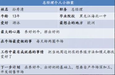2010年毕业后,正直贝因美奶源管理中心招聘,来到牧场工作主要是三方面原因,一是比较喜欢奶牛养殖行业,二是由于学的食品科学与工程专业正好专业对口,三是距离家比较近。所以我直接加入贝因美奶源部工作,主要是负责奶站收奶。通过2年的努力,自己专业水平的提高,2012年作为贝因美驻场代表加入山东屯牧场现担任奶厅主管一职,主要负责监督原奶收购指标。通过这几年的努力,目前山东屯牧场已成为贝因美最优质、最安全、最放心的奶源基地。作为一个年轻人,尤其是80、90后,要坚持自己的选择,学以致用,无论从事哪个行业都会有精英代表,我相信我会成为奶牛养殖行业的精英。