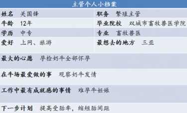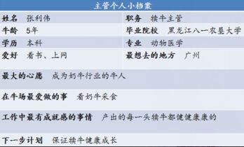 能够从事奶牛养殖行业主要原因有两方面,第一,老家在双城地区,双城是雀巢在中国投资最早的乳制品加工生产基地,90年代初双城雀巢在当地发展养牛事业的黄金时期。第二,姐夫从事养牛行业20多年,90年代初一直和姐夫学习兽医方面的知识,通过与姐夫的学习和牧场的实际操作,逐渐的喜欢并热爱上了这个行业。为了进一步提升自身的专业水平,在双城畜牧兽医学院进修学习兽医专业2年。养牛一年365天每天在牛场工作,重复着同一样的工作,与奶牛在一起的时间超过了与家人在一起的时间,但是我无怨无悔,我选择,我喜欢!