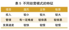 通过以上管理、经营和投入等各方面的比较,三大生猪养殖企业的总特点见表5。温氏因在土地、资金方面可充分利用农户资源,所以发展速度较快;相比之下,立华和牧原受到土地和资金的约束,发展速度有所迟缓。但立华和牧原的管理水平得到提高,可伴随而来的是投入的增加。因此,各模式下鱼与熊掌难以同时兼得。