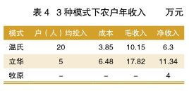 由表3和表4可知,假设农户饲养水平类似且不考虑其他可能导致生产差异的因素,单纯从农户年收入的经济角度来看,立华模式下的农户可获得较高年收入,不仅仅让农民成为农业养殖的主人公、增加就业机会,还可大大提高农户收入、改善农村家庭生活水平。但是养殖户也需注意到收入与许多主观和客观因素相关联,必须提升自身责任心、素质和管理水平才是增加收入的关键。