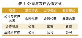 温氏模式下,农户利用自有的土地、猪舍、生产工具各自进行养殖,农户和公司之间只是单纯的供销合作关系。立华模式中农户直接在立华公司建造的基地内饲养商品猪,使用相同规格的猪舍和生产工具等,所以此农户和公司合作更为紧密,这样公司既可以按照产品质量要求对农户养殖过程进行指导,还可以避免农户偷偷把猪卖给其他收购商,对企业谎称死亡率高,导致企业收购困难的情况。牧原股份是直接雇佣员工进行养殖生产,此模式下的生猪所有权归公司所有。